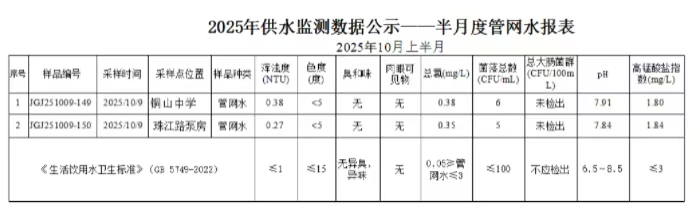 2025年10月上半月管网水