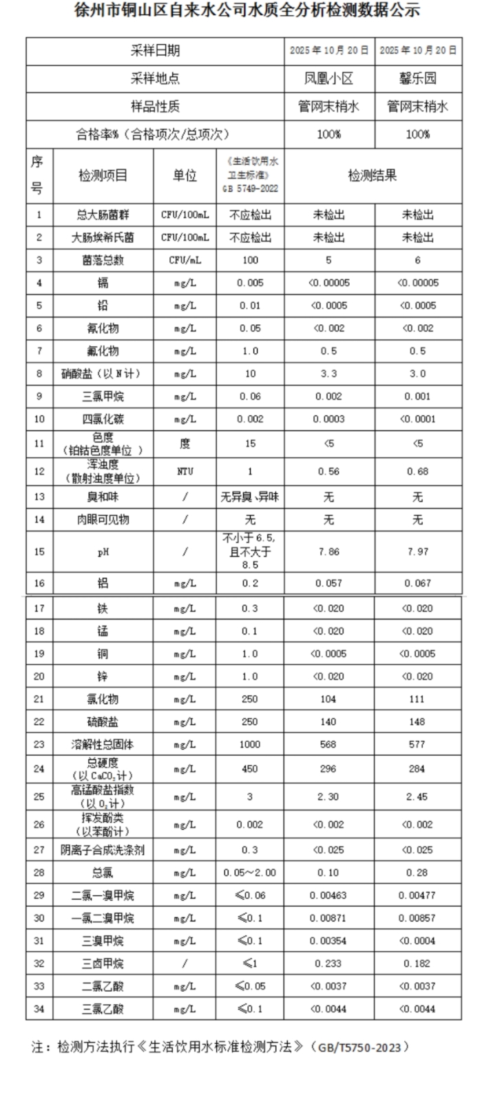 2025年10月水质公示